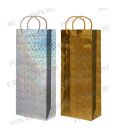 Ламинированные голографические бумажные сумочки с ручками используются для упаковки бутылок вина и шампанского. Такие пакеты широко применяются в быту и торговых сетях.